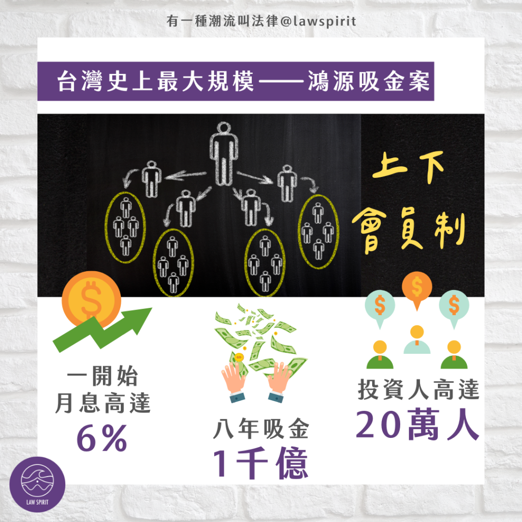 相信有很多人仍對台灣史上最大規模的「鴻源吸金案」印象十分深刻,這個台灣史上最大的吸金案,一開始月息高達六分,短短八年就吸金一千億,投資人高達20萬人,還推動上下會員制。
